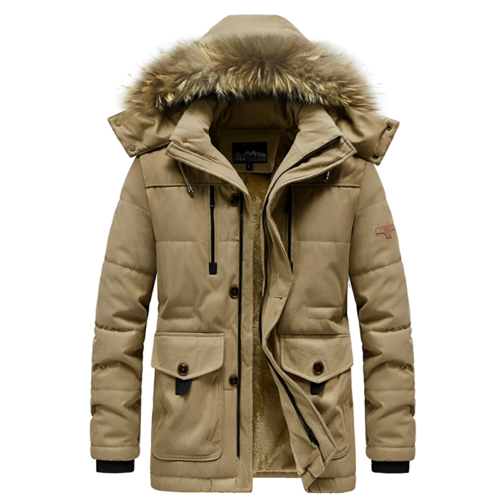 Die Kapuze ist großzügig mit einem abnehmbaren, schützenden Kunstpelz besetzt. Mit seinen großen, nützlichen Pattentaschen und dem Doppelverschluss (Reißverschluss + Knöpfe) ist dies die Jacke, die Sie brauchen, um warm und trocken zu bleiben, mit einem authentischen Look.