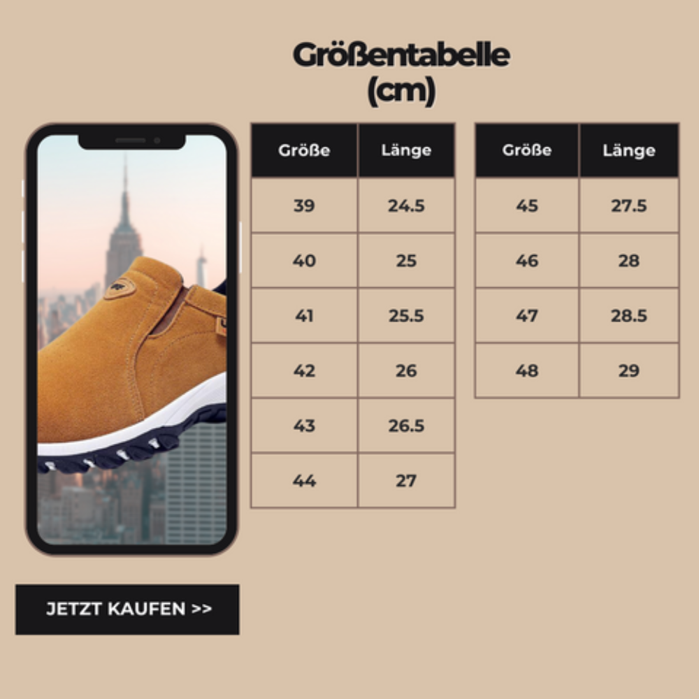 Die Julio Schuhe wurden speziell entwickelt, um optimalen Halt, Komfort und Entlastung bei jedem Schritt zu bieten. Diese orthopädischen Walking-Schuhe kombinieren modernes Design mit ergonomischer Funktionalität, perfekt für Männer, die Wert auf gesunde Füße und stilvolles Auftreten legen. Ideal für Spaziergänge, Arbeitstage oder längere Aktivitäten im Alltag.